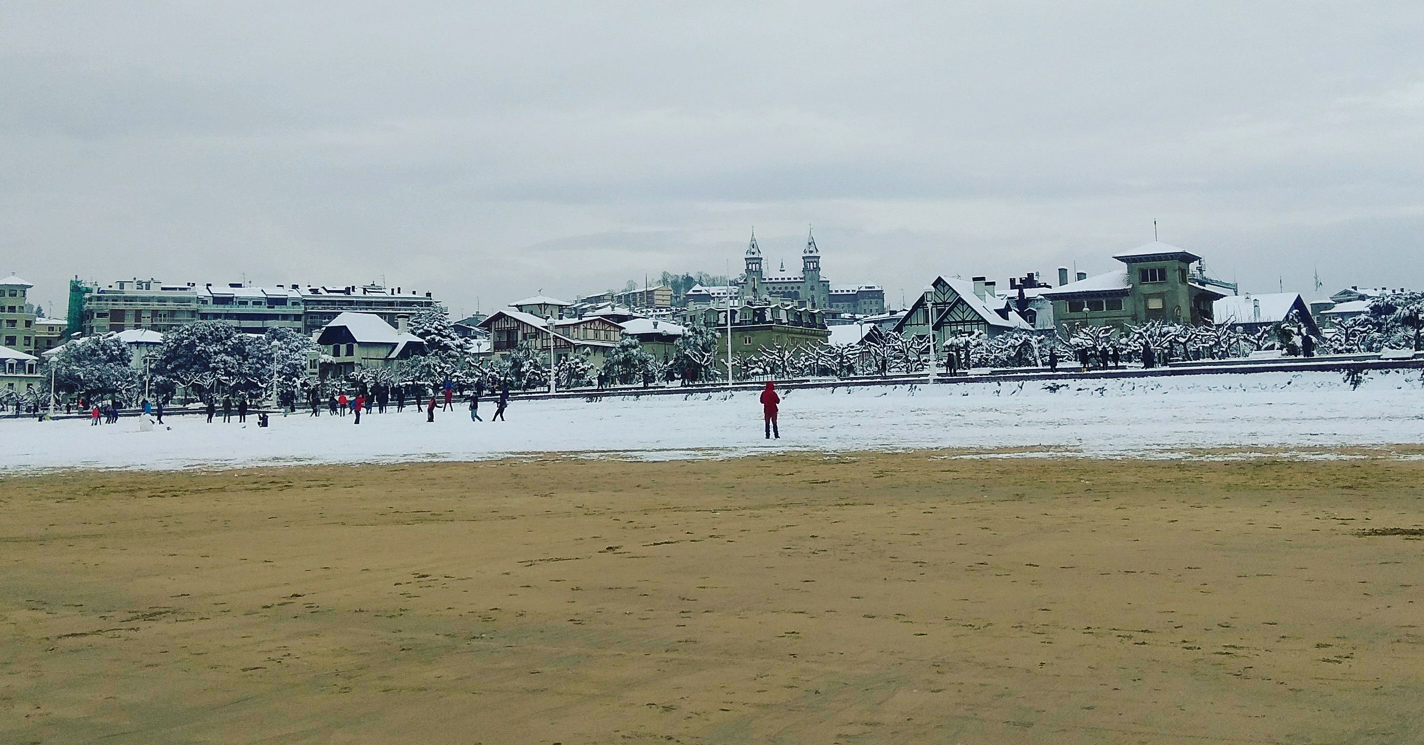 | Descripción: | Playa de Ondarreta. La nieve cubre parte de la arena de la playa y dibuja siluetas en blanco en el barrio del Antiguo. |